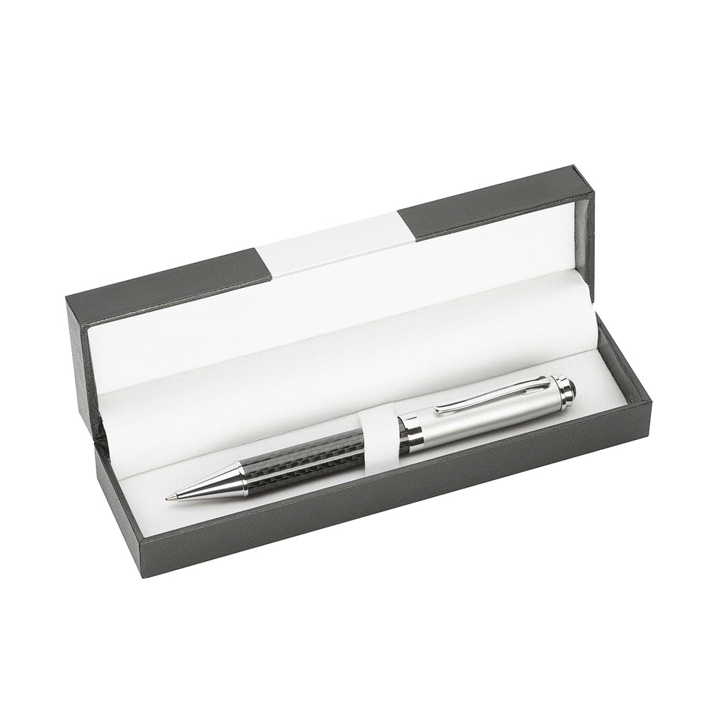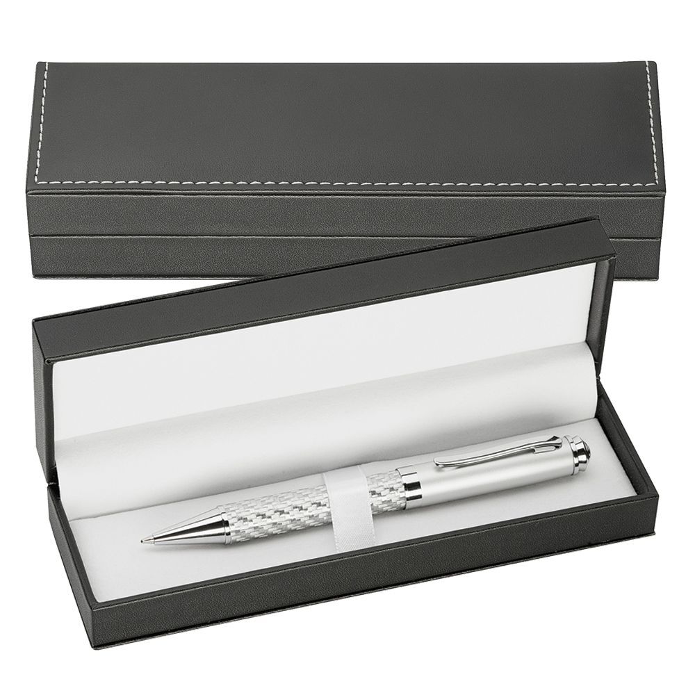 Deluxe leather-look pen presentation case which will hold one or two pens. It has zippered closure, and the PU strap with hidden elastic loops helps to secure the pens.