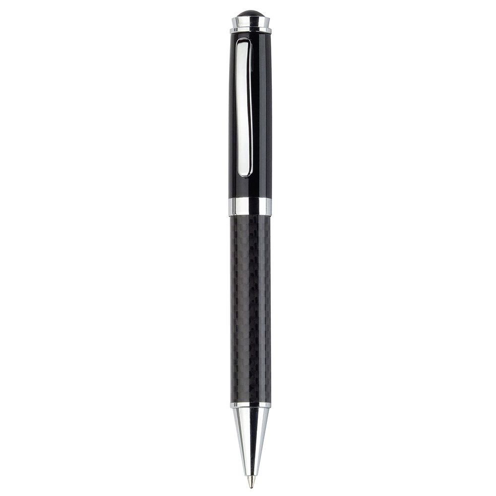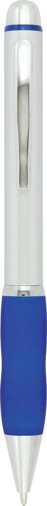 The Aspen has a solid metal casing, silver fittings and rubber grip. Push button with a Parker style black refill.