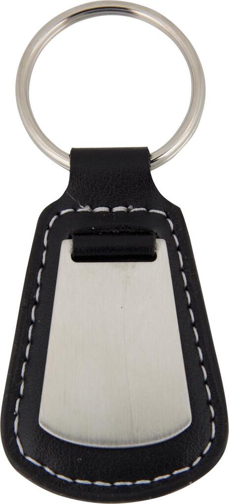 Square genuine leather key ring with smart matching stitching nicely presented in a black gift box.