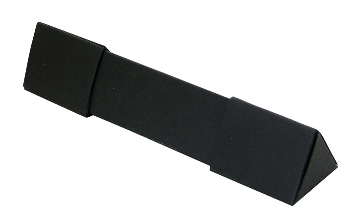 Manufactured from gloss black material with metal badge this pen box has a white velvet look interior with sash to hold pen.