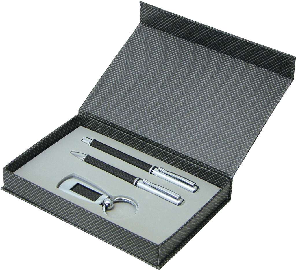 Precision Swiss Peak pen set which features a twist action ball pen and a rolling ball pen that are beautifully presented in a Swiss Peak gift box. They are manufactured from lacquer finished brass and have shiny chrome accents. Both pens have a blue refill with 1200 metres of German manufactured Dokumental ink. They laser engrave to a brass finish and have subtle Swiss Peak branding on the centre ring and cap.