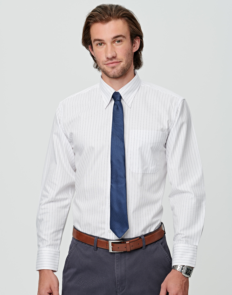Premium cut and sewn 120gsm women's poplin shirt made from 98% combed cotton and 2% elastane. The shirt features long sleeves with single button cuffs, a seven-button placket and a classic collar. Parker is available in seven sizes.